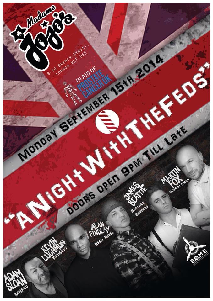 Night with the Feds Location in Madame Jojo's The iconic Soho venue hosted the finest of UK barbering in aid of Prostate Cancer UK. Performers on the night included The Bomb squad and Kevin Luchman.