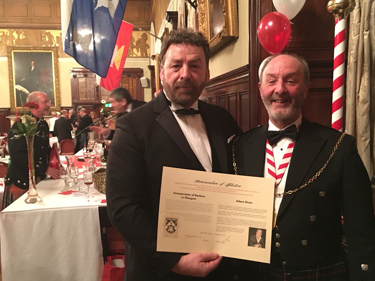 Adam inducted into Barber Guild .Adam became the first Barber in 365 years to be elevated into the prestigious Barber & Surgeon guild